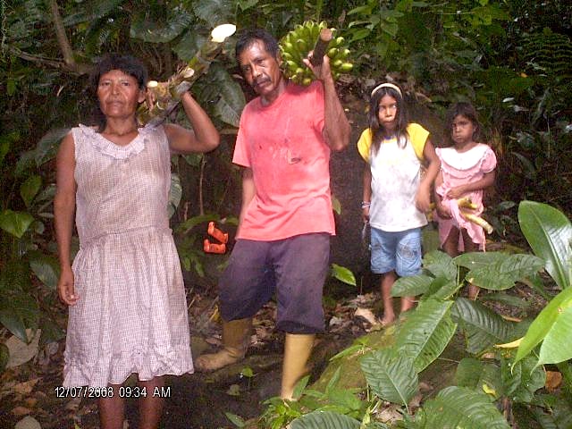 CACIQUE SABINO CON SU ESPOSA LUCÍA Y DOS DE SUS HIJAS CARGANDO EL FRUTO DE LA TIERRA